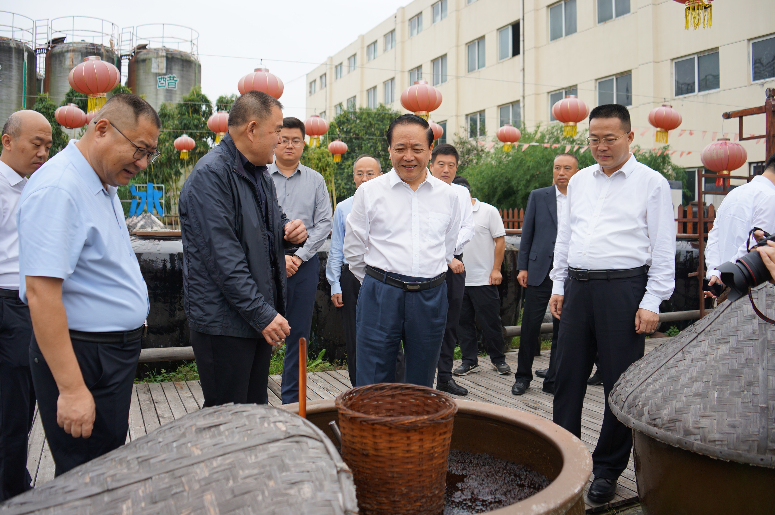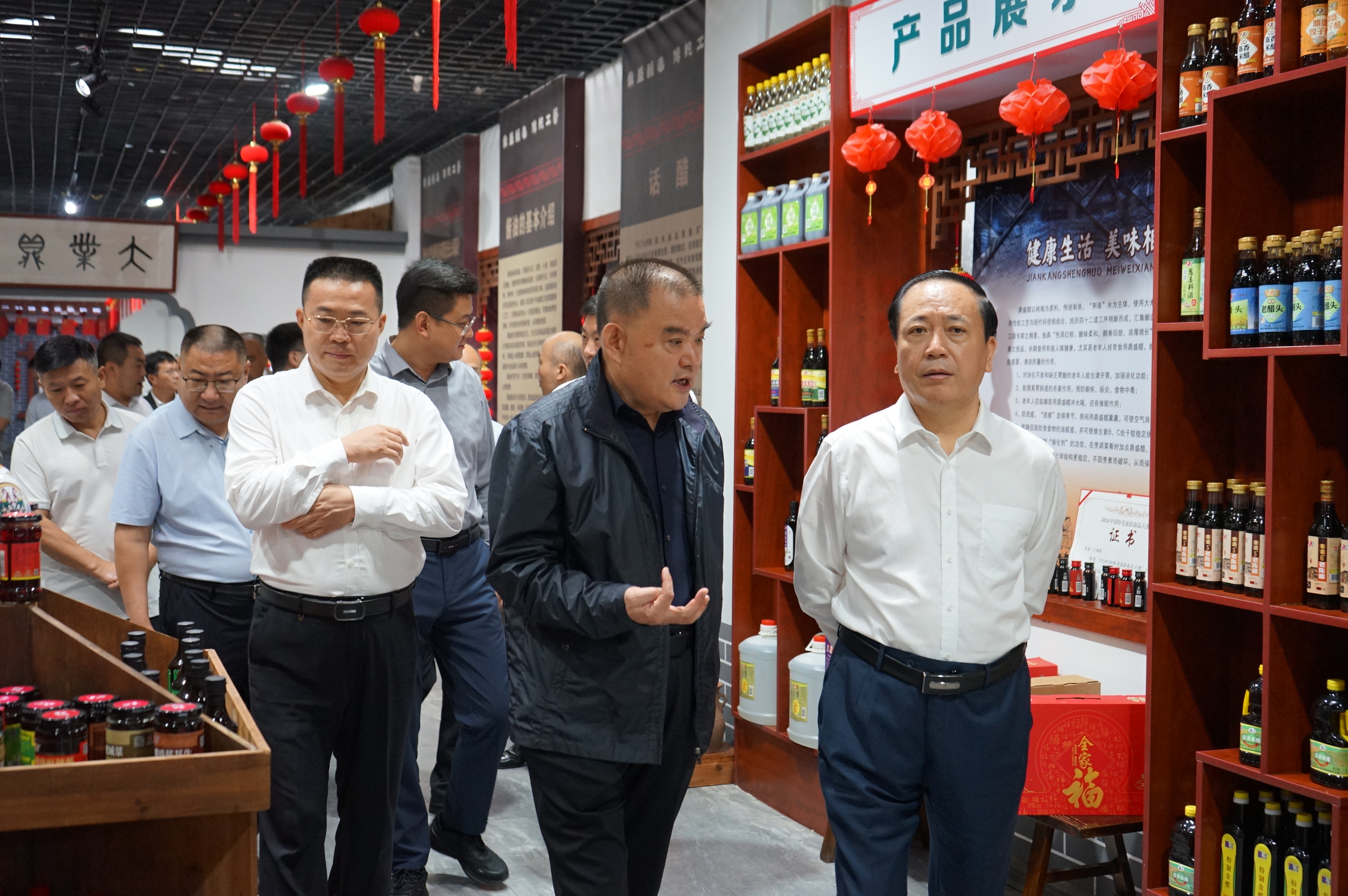 王书记一行调研鼎盛调味品产业发展。作为“山东老字号”“国家高新技术企业”,鼎盛酿造的传统酿造技艺已列入枣庄市非物质文化遗产,旗下酱油、食醋、酱类、酱菜等四大类180余个品种远销多地,石榴醋调料更成为市场新宠。